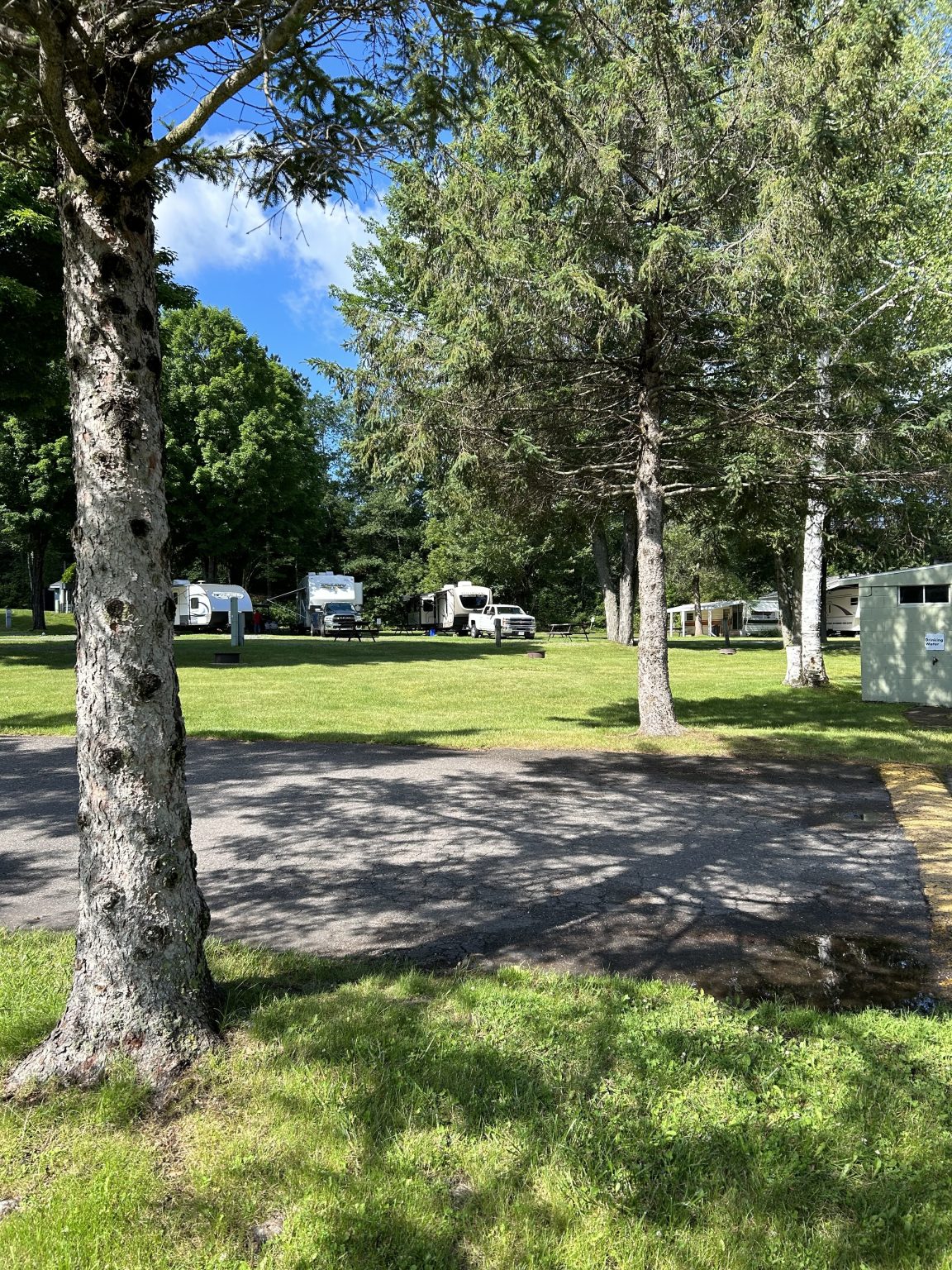 We stayed in site 99. Staff was more than helpful. We explored the area and went up to Marquette for a day then out to Pictured Rocks. Our sight was very nice, above what We’ve seen in other parks. Direct access to the water via a private steps to a small dock. We enjoyed nights with a fire under the stars. No problems with power or leveling. Park is under new management and are making upgrades around the park. We camped at Rivers Bend Campground in a Motorhome